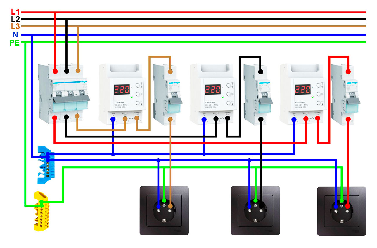 Саме така схема підключення реле напруги вважається безпечною та правильною.