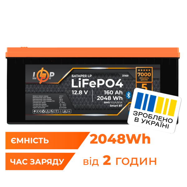 Придбати Акумулятор LP LiFePO4 12,8V - 160 Ah (2048Wh) (BMS 100A/80А) пластик Smart BT з категорії Акумуляторні батареї - модель: 31169, виробник: LogicPower) за ціною 22 500.00 грн. грн можна в надійному інтернет-магазині KaratLTD.com.ua. В наявності — 0 одиниць, тож ви зможете швидко оформити замовлення без зайвого очікування.