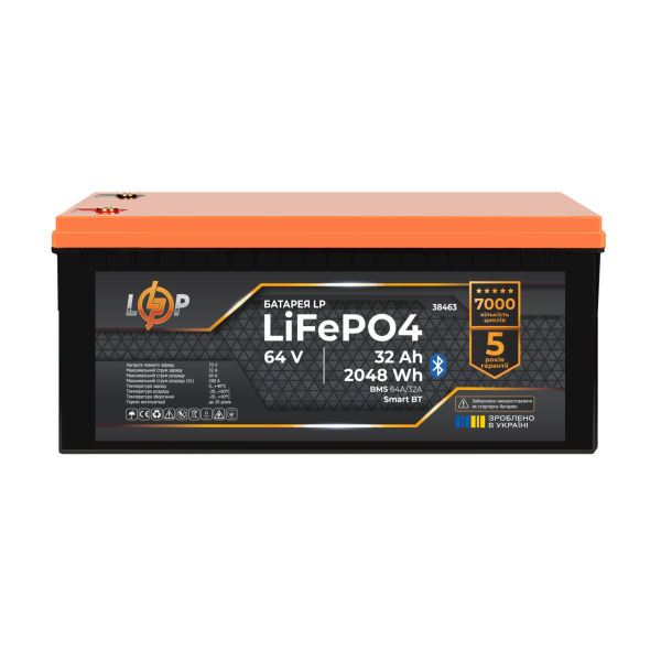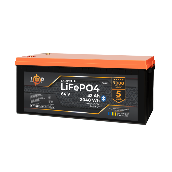 Забудьте про блекаути з літій-залізо-фосфатними (LiFePO4) акумулятором Акумулятор підходить для роботи з ДБЖ Акумулятор LP LiFePO4 64V - 32 Ah (2048Wh) (BMS 64A/32А) пластик Smart BT Smart BT Максимум енергії для комфортного життя Час до повного заряду батареї від 2 годин. Більше ніж 5 годин автономного живлення для вашої техніки. 15 років ефективного використання. *Час заряду може змінюватись в залежності від струму заряду. Літієві батареї LiFePO4 українського бренду LogicPower забезпечують надійну та безпечну роботу для систем резервного живлення різної потужності. Кожна модель наших акумуляторів оснащена передовою системою управління батареями (BMS). Це гарантує максимальну ефективність, довговічність і безпеку в експлуатації. Переваги літієвого акумулятора LiFePO4 Швидке заряджання та відсутність ефекту пам'яті: Літієві акумулятори заряджаються значно швидше, ніж свинцево-кислотні. Відсутність ефекту пам'яті означає, що акумулятор можна заряджати та розряджати за будь-якого рівня зарядки без втрати ємності. Акумулятори LiFePO4 заряджаються з максимально рекомендованим струмом 0,5С, де С - ємність акумулятора. Для акумулятора LP LiFePO4 64V - 32 Ah максимальний струм заряду не повинен перевищувати 50 А. Важливо, щоб цей струм не перевищував BMS, щоб зберегти безпеку та продовжити термін служби акумулятора. Довговічність: АКБ LiFePO4 мають величезний термін служби. Вони здатні витримати до 7000 циклів розрядки й зарядки, що в рази перевищує термін служби свинцево-кислотних акумуляторів. Наприклад, літієвий акумулятор для ДБЖ (UPS) ефективно працюватиме понад 10 років. Безпека та екологічність: Технологія виготовлення літій-залізо-фосфату забезпечує високу стабільність і безпеку акумулятора. Термічна та хімічна стабільність - ключова особливість LiFePO4. Даний тип акумуляторів має значну перевагу в частині безпеки порівняно з іншими типами літієвих батарей. Вбудована система управління батареєю (BMS) захищає від перезаряду, перерозряду, перегріву та короткого замикання. Наприклад, використання таких акумуляторів у домашніх системах резервного живлення мінімізує ризик виникнення пожеж. Літієвий акумулятор для котла має низьку токсичність, що робить їхнє використання та утилізацію безпечною для довкілля. Компактні розміри: Літієві акумулятори легші та компактніші за свинцево-кислотні. Це спрощує їх транспортування та встановлення. Низький рівень саморозряду: Літієві акумулятори LiFePO4 мають низький рівень саморозряду, що дає змогу зберігати заряд під час простоїв без необхідності підзарядки. Енергоефективність: Висока щільність енергії дає змогу літієвій батареї зберігати більше енергії в меншому об'ємі, порівнюючи зі свинцево-кислотними акумуляторами. Де використовують літієвий (LiFePO4) акумулятор 64В в Україні? Резервне живлення для дому та квартири У разі відключення електроенергії, літієві акумулятори LiFePO4, можуть підтримувати роботу побутових приладів: Освітлення: Основне або аварійне освітлення в будинку. Побутова електроніка: Телевізори, холодильники, комп`ютери, роутери. Портативні зарядні станції: Для заряджання мобільних телефонів, ноутбуків та інших пристроїв. Системи резервного живлення Літієві акумулятори LiFePO4 широко використовуються в системах резервного живлення для критично важливого обладнання: Забезпечують безперебійне живлення серверів і мережевого обл