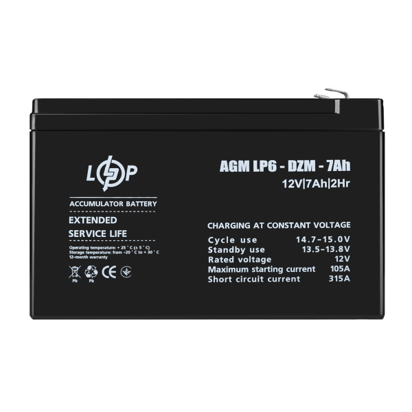 Акумулятор свинцево-кислотний AGM Зовнішня універсальна АКБ, виготовлена за технологією AGM – повністю герметичне зовнішнє джерело живлення, яке не потребує технічного обслуговування в процесі зберігання та експлуатації. Технологія виготовлення універсальних зовнішніх акумуляторів AGM (absorbent glass mat) передбачає наявність усередині батареї абсорбуючої прокладки зі скловолокна. АКБ цього типу чудово справляються з підвищеними навантаженнями. Тяговий акумулятор - це оптимальне рішення, якщо вам потрібен надійний прилад для забезпечення техніки електричним живленням. Модель тягового акумулятора, головним чином, призначена для генерації електроенергії, яка необхідна для забезпечення безперебійним живленням спеціальної техніки: електрокари, навантажувачі та інше. Переваги AGM акумулятора: Ресурс циклів заряд/розряд у AGM акумулятора – 400* (загалом 5 років, залежно від умов експлуатації). Акумулятор можна встановлювати у житлових приміщеннях. Відсутність вільного рідкого електроліту між пластинами та повна герметичність корпусу виключають витікання кислоти та гарантують відсутність шкідливих випарів. Ці акумулятори при практичному використанні показують стабільні результати під час роботи в умовах низьких (-20°С) та високих (+50°С) температур навколишнього середовища. В експлуатації свинцево-кислотний акумулятор AGM здатний витримувати тривалий розряд, циклічний розряд, глибокий розряд і розряд високими струмами. Акумулятори цього типу мають низькі показники саморозряду при тривалому зберіганні та надійний самозахист від перерозряду та надмірного заряду батареї. Особливості виробництва AGM акумуляторів Всередині акумуляторної батареї, виготовленої за технологією AGM, розміщують пористі ізолюючі прокладки тонкого скловолокна. Сепаратори та електродні пластини щільно притиснуті один до одного. Таким чином, між пластинами акумулятора залишається вільного рідкого електроліту, бо він міститься в сепараторі та в активній частині електродів. Кількість рідкого електроліту дозується таким чином, щоб дрібні пори заповнювалися кислотою, а великі забезпечували циркуляцію газів. Конструкція АКБ має покращену систему рекомбінації газів - кисень і водень, що утворюються в результаті хімічних процесів, не встигають випаровуватись за межі герметичного корпусу до моменту конденсації. Чим відрізняється DZM акумулятор від звичайного свинцево-кислотного АКБ? DZM акумулятори розраховані на роботу з більшим пусковим струмом ніж AGM акумулятори, що робить їх ідеально правильним рішенням для човнів, електровелосипедів та іншого транспорту, який працює на електричній тязі. Області застосування: навіщо потрібен свинцево-кислотний акумулятор AGM? Універсальний зовнішній зарядний акумулятор використовують: У системах аварійних оповіщень. У човнах. У велосипедах та іншому транспорті, який працює на електричній тязі. У телекомунікаційних та інших системах зв'язку, у тому числі як зовнішній АКБ для заряджання мобільних телефонів, рації тощо. Для обладнання систем відеоспостереження, безпеки, охоронної, протипожежної та іншої сигналізації. У системах безперебійного живлення серверних станцій. Як джерело живлення для медичного, лабораторного, торговельного та іншого спеціалізованого обладнання. У системах накопичення енергії від альтерна