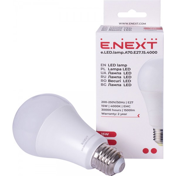 Придбати Лампа світлодіодна e.LED.lamp.A70.E27.15.4000, 15Вт, 4000К з категорії Лампи світлодіодні LED - модель: l0650602, виробник: E.NEXT) за ціною 82.00 грн. грн можна в надійному інтернет-магазині KaratLTD.com.ua. В наявності — 1306 одиниць, тож ви зможете швидко оформити замовлення без зайвого очікування.