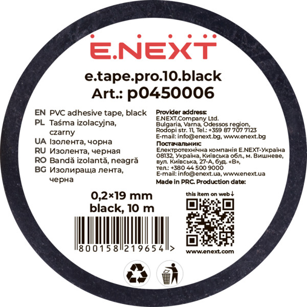 Придбати Ізолента e.tape.pro.10.black із самозгасаючого ПВХ, чорна (10м) з категорії Ізоляційна стрічка - модель: p0450006, виробник: E.NEXT) за ціною 27.20 грн. грн можна в надійному інтернет-магазині KaratLTD.com.ua. В наявності — 3677 одиниць, тож ви зможете швидко оформити замовлення без зайвого очікування.
