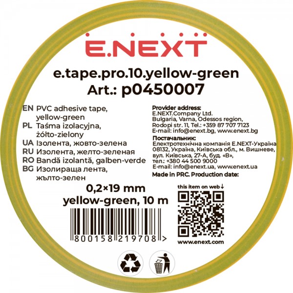 Придбати Ізолента e.tape.pro.10.yellow-green із самозгасаючого ПВХ, жовто-зелена (10м) з категорії Ізоляційна стрічка - модель: p0450007, виробник: E.NEXT) за ціною 34.00 грн. грн можна в надійному інтернет-магазині KaratLTD.com.ua. В наявності — 1249 одиниць, тож ви зможете швидко оформити замовлення без зайвого очікування.