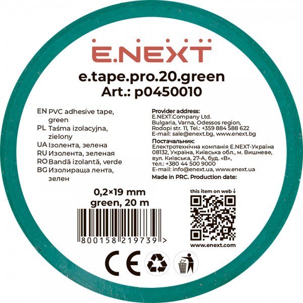 Придбати Ізолента e.tape.pro.20.green із самозгасаючого ПВХ, зелена (20м) з категорії Ізоляційна стрічка - модель: p0450010, виробник: E.NEXT) за ціною 52.70 грн. грн можна в надійному інтернет-магазині KaratLTD.com.ua. В наявності — 1902 одиниць, тож ви зможете швидко оформити замовлення без зайвого очікування.