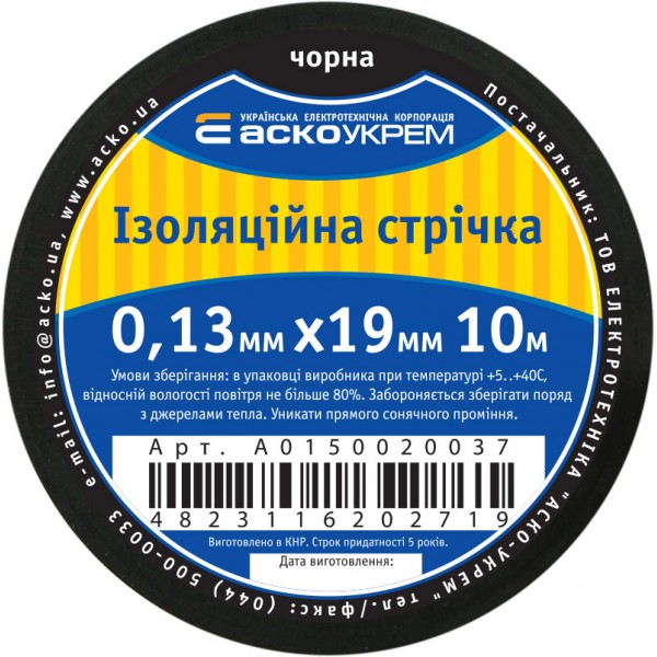 Придбати Стрічка ізоляційна 0,13мм*19мм/10м чорна з категорії Ізоляційна стрічка - модель: A0150020037, виробник: АСКО-УКРЕМ) за ціною 25.30 грн. грн можна в надійному інтернет-магазині KaratLTD.com.ua. В наявності — 10 одиниць, тож ви зможете швидко оформити замовлення без зайвого очікування.