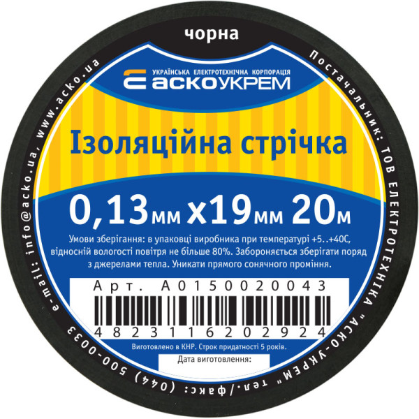 Придбати Стрічка ізоляційна 0,13мм*19мм/20м чорна з категорії Ізоляційна стрічка - модель: A0150020043, виробник: АСКО-УКРЕМ) за ціною 49.30 грн. грн можна в надійному інтернет-магазині KaratLTD.com.ua. В наявності — 199 одиниць, тож ви зможете швидко оформити замовлення без зайвого очікування.