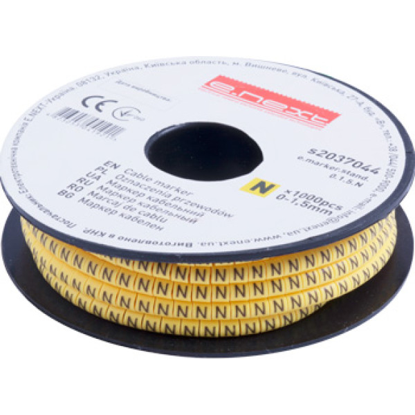 Придбати Маркер кабельний e.marker.stand.0.1.5.N, 0-1,5 кв.мм, "N", 1000 шт з категорії Кабельний маркер - модель: s2037044, виробник: E.NEXT) за ціною 62.90 грн. грн можна в надійному інтернет-магазині KaratLTD.com.ua. В наявності — 150 одиниць, тож ви зможете швидко оформити замовлення без зайвого очікування.