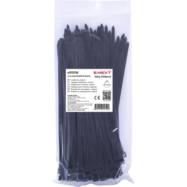 Придбати Кабельна стяжка e.ct.stand.500.8.black (100шт), чорна з категорії Кабельні стяжки пластикові - модель: s015118, виробник: E.NEXT) за ціною 629.20 грн. грн можна в надійному інтернет-магазині KaratLTD.com.ua. В наявності — 1 одиниць, тож ви зможете швидко оформити замовлення без зайвого очікування.