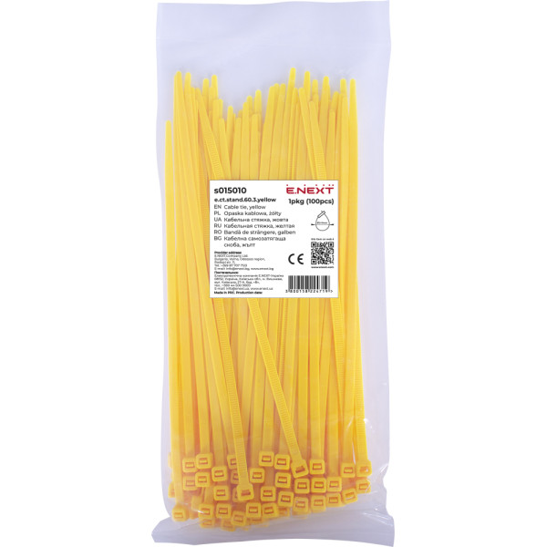 Придбати Кабельна стяжка e.ct.stand.60.3.yellow (100шт), жовта з категорії Кабельні стяжки пластикові - модель: s015010, виробник: E.NEXT) за ціною 21.10 грн. грн можна в надійному інтернет-магазині KaratLTD.com.ua. В наявності — 47 одиниць, тож ви зможете швидко оформити замовлення без зайвого очікування.