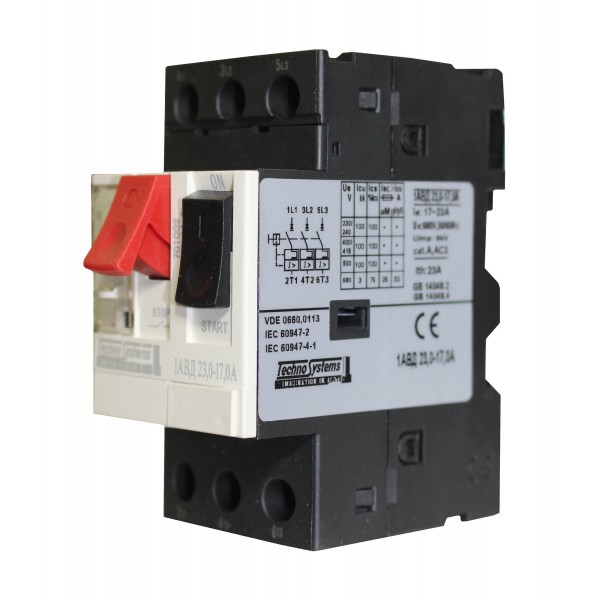 Автоматичний вимикач 1АВД23-17А для захисту двигуна (220V 5kW / 400V 10kW) TNSy