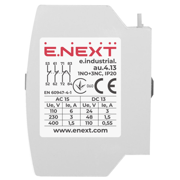 Придбати Додатковий контакт e.industrial.au.4.13, 1no+3nc з категорії Додаткове обладнання до контакторів - модель: i0140008, виробник: E.NEXT) за ціною 179.40 грн. грн можна в надійному інтернет-магазині KaratLTD.com.ua. В наявності — 187 одиниць, тож ви зможете швидко оформити замовлення без зайвого очікування.