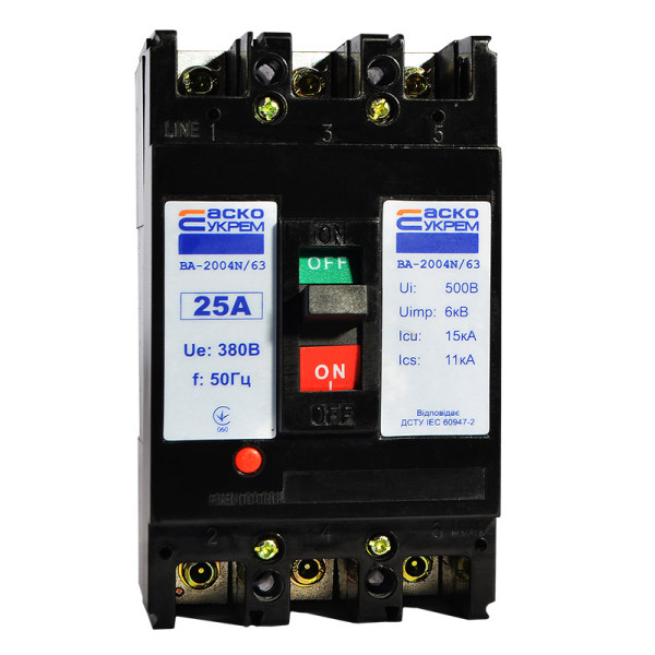 Придбати Автоматичний вимикач УКРЕМ ВА-2004N/63 3р 25А АСКО з категорії Силові автоматичні вимикачі - модель: A0010040061, виробник: АСКО-УКРЕМ) за ціною 1 251.00 грн. грн можна в надійному інтернет-магазині KaratLTD.com.ua. В наявності — 10 одиниць, тож ви зможете швидко оформити замовлення без зайвого очікування.